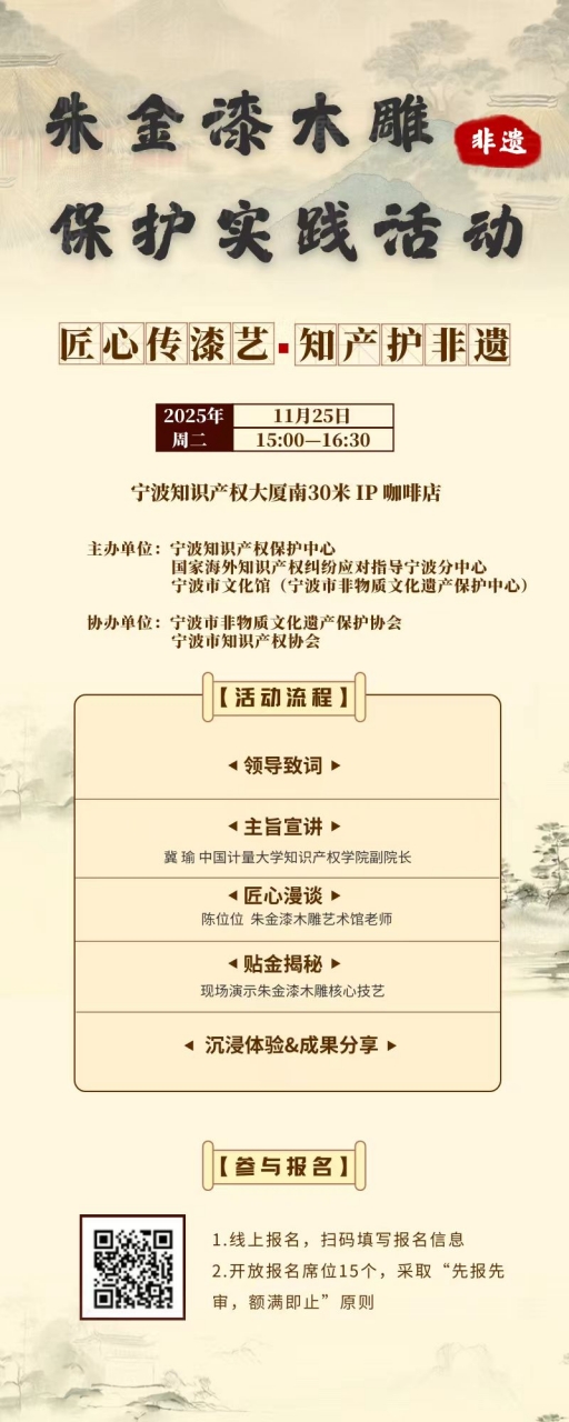 报名开启 | 聚焦朱金漆木雕非遗保护——知识产权助力传统漆艺的传承与发展