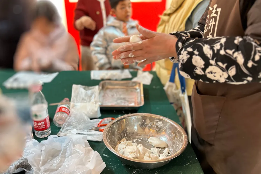 2月21日下午,117艺术中心里热闹非凡,亲子非遗手作体验——汤圆制作活动正在火热进行中,空气中弥漫着香甜的气息,小朋友和家长们围坐一团,正专心制作寓意团圆的汤圆。