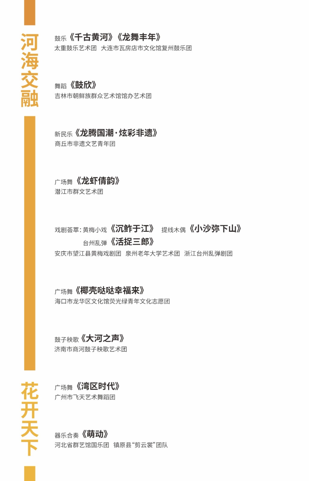 来自全国各地的优秀群众文艺团队汇聚一堂,共同呈现一场精彩绝伦的文化盛宴。