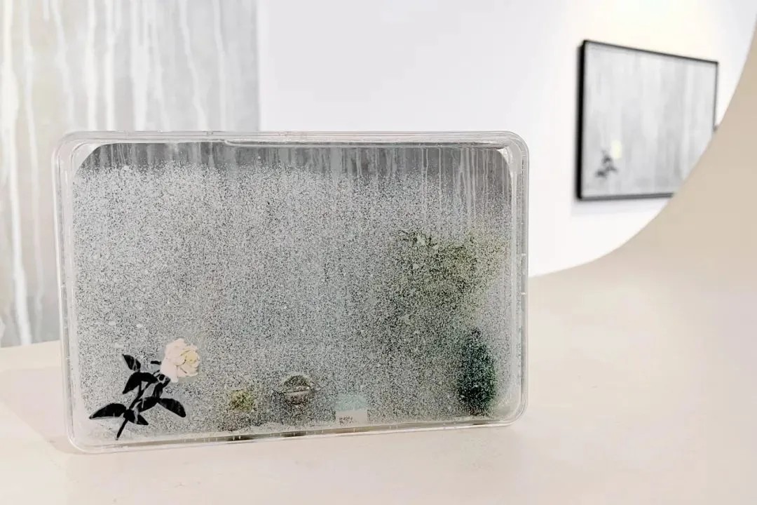 罗工柳的诗意画是本次展览中的重点内容,在《郁郁葱葱》作品的对面,是两幅银与白交叠的作品,同样映衬着这位艺术家内心不仅有火热,更有面对冷冽的顽强。《漫天雪》是根据毛主席诗词《沁园春·雪》创作而来,在经历 “千里冰封,万里雪飘” 后,枝干上星星点点的雪花正映射着寒冬蕴藏的生命力。