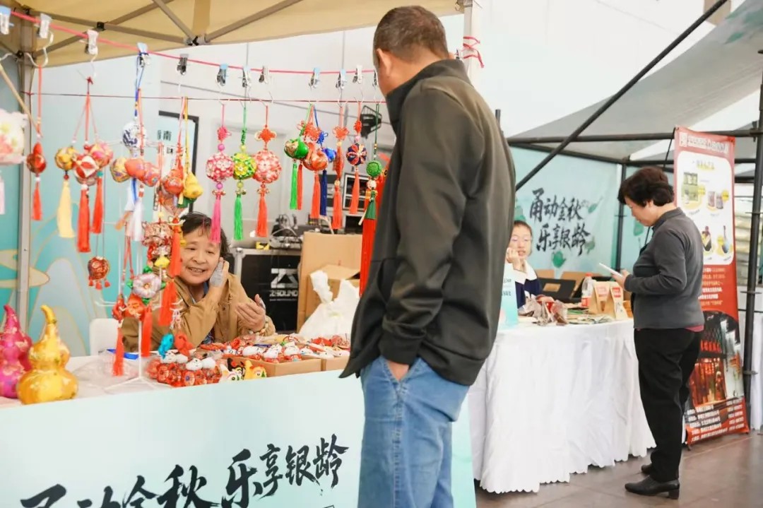 活动现场精心规划了综合服务、游戏互动、非遗展示、银发市集、聊天休憩、最美合影六大功能区域。统一的视觉设计将现场装点得既传统又现代,巧妙融合了精湛的非遗技艺、深厚的宁波本土风情与前沿的互动科技。老人们既能在宋韵雅致的布景中沉浸式触摸历史脉搏,感受非遗之美;也能在近代城市故事展里回味岁月变迁;更能在科技互动区畅想智慧未来。每一处细节都蕴含着“乐享银龄”的贴心巧思,展现了全社会对老年群体精神文化生活的深切关怀。