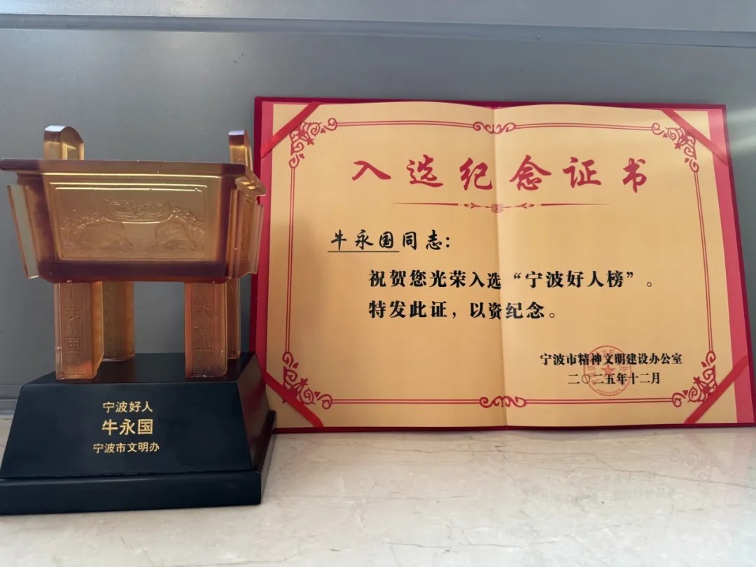 2022年,他自费开设公益爱国主义展览馆,并以“知史爱党知史爱国”为主题,累计开展公益爱国主义教育活动近300场,服务青少年超2万人次。他多次随团出访保加利亚、哥伦比亚、墨西哥、韩国等国,在中外建交周年等重要场合展示宁波非遗魅力,让非遗成为中外文化交流的桥梁。牛永国曾获宁波市高新区优秀党员、中国非物质文化遗产保护协会青年非遗视频创作哺育计划入选者等荣誉,其事迹被央视新闻、浙江卫视、学习强国等多家媒体报道,展现了新时代宁波人的文化自信与奉献担当。