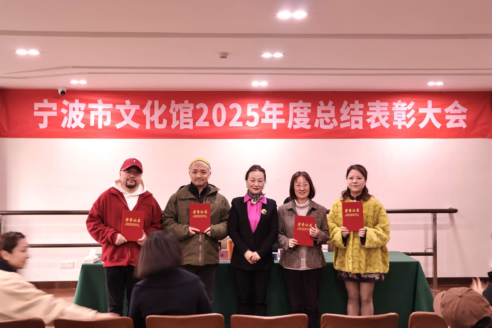 会议开始,王志明副馆长宣读了2025年度表彰决定,郑志玥副馆长随后就春节期间安全管理工作进行专项部署,尤其对即将全面启用的宁波市公共文化中心等重点区域作出细致安排,强调要筑牢节日安全防线,确保全馆平安祥和迎新春。大会对办公室、表演艺术中心、全民艺普中心、非物质文化遗产保护部等4个荣获“优秀部(室)”称号的集体,以及16位“优秀个人”进行了隆重表彰。一本本鲜红的证书,一张张喜悦的笑脸,凝聚着过去一年辛勤耕耘的汗水,也激荡起见贤思齐、共赴新程的澎湃动力。