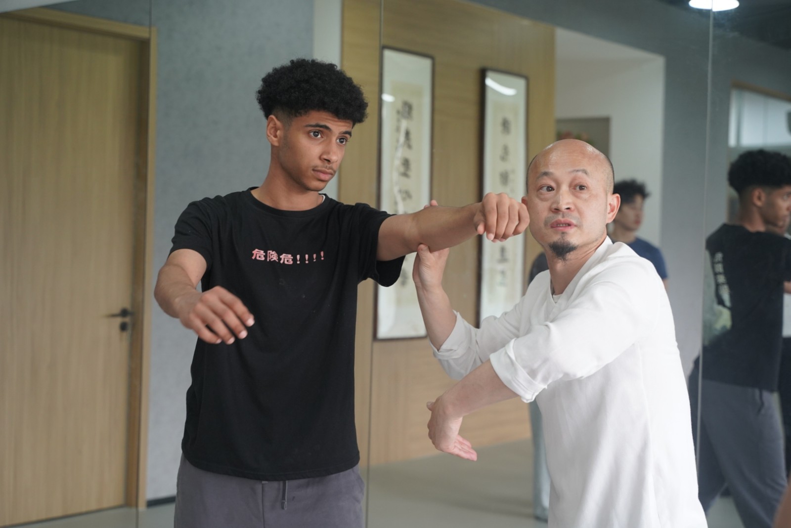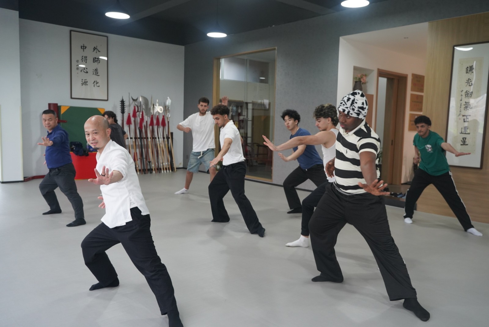 4月17日下午,内家拳宝峰道场正谦传习点(四明东路568号)内,来自也门、摩洛哥、蒙古、塔吉克斯坦、几内亚的浙大宁理留学生跟着内家拳掌门夏宝峰先生学习内家拳,在亲授体验课中,于拳脚间感受中华武道智慧。