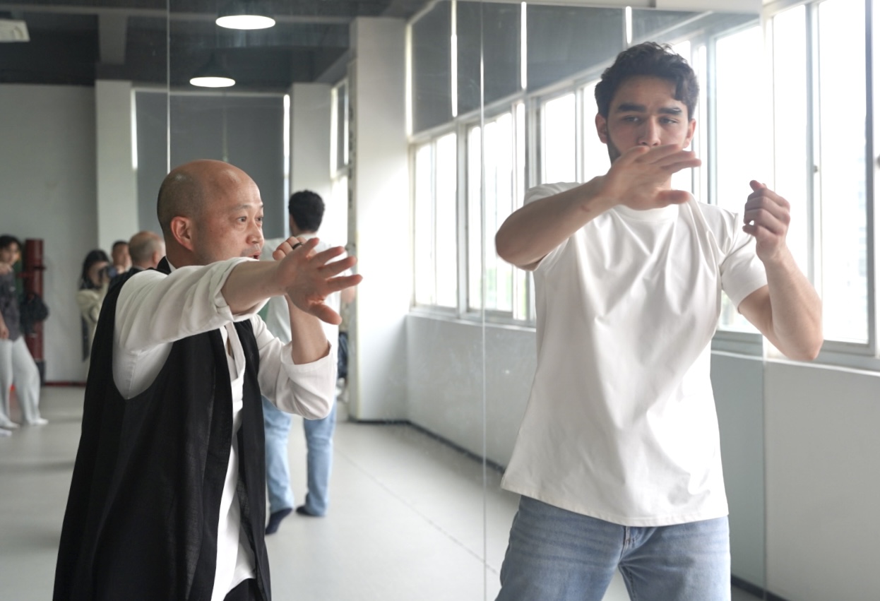 实操环节中,夏掌门从内家抱拳礼教起亲自示范、细致纠错,其弟子叶继谦的精彩拳法展示,赢得留学生阵阵掌声,也点燃了大家的学习热情。