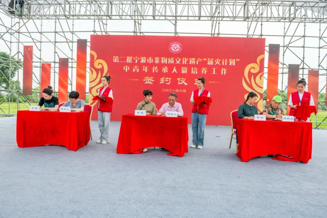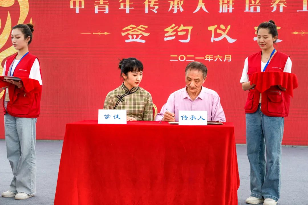 演出结束后,第二批“薪火计划”中青年传承人群培育工程的师徒现场举行了签约仪式。